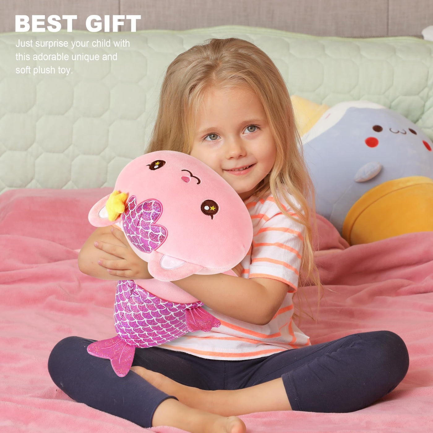 Q: Is this plush toy suitable as a gift for different age groups?A: Yes, this mermaid cat plushie is a versatile gift option suitable for both children and adults, making it a delightful present for family members, friends, and relatives.