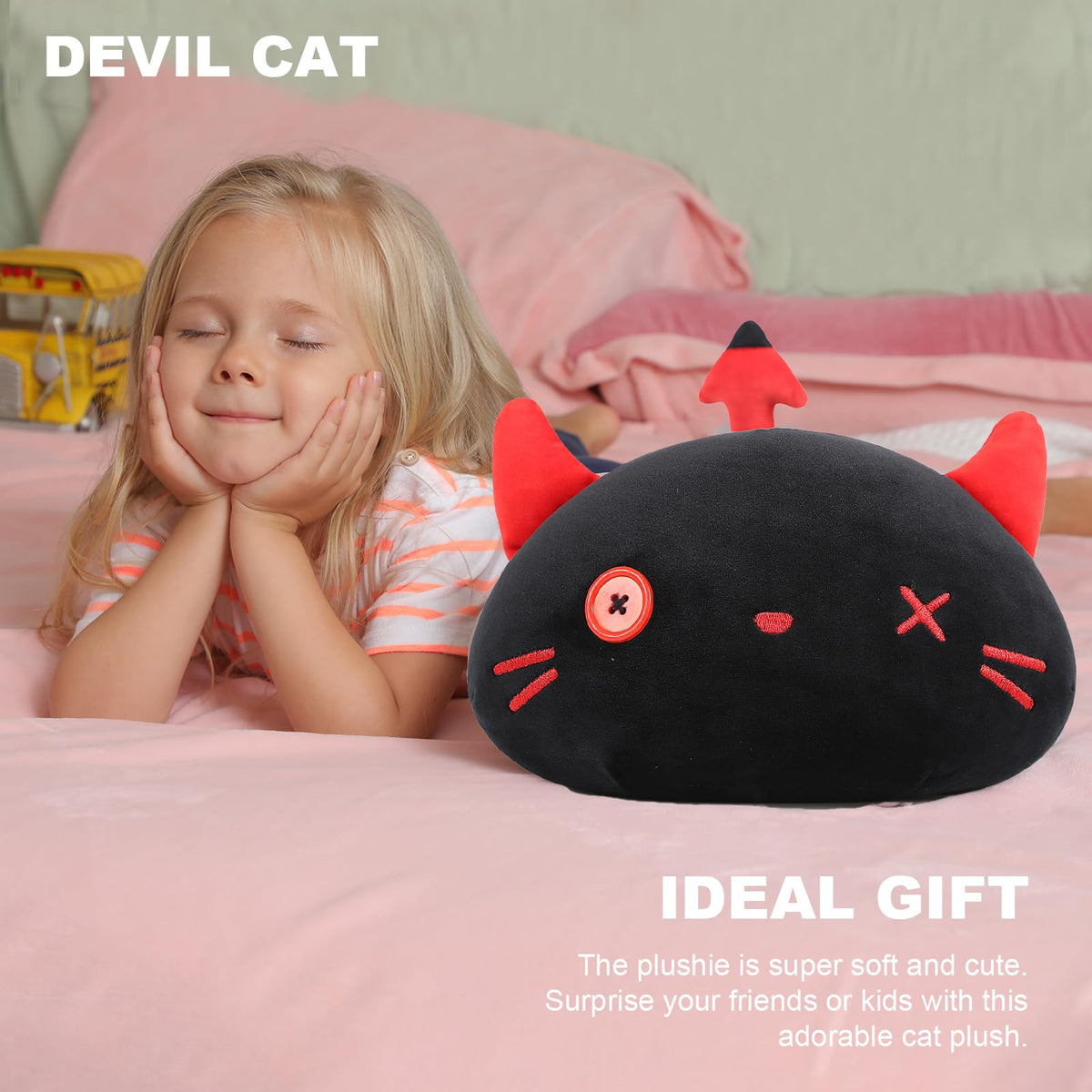Onsoyours Cute Kitten Plush Toy Stuffed Animal Black Kitty Soft Anime Cat Plush Pillow For Kids (Devil Cat, 12')