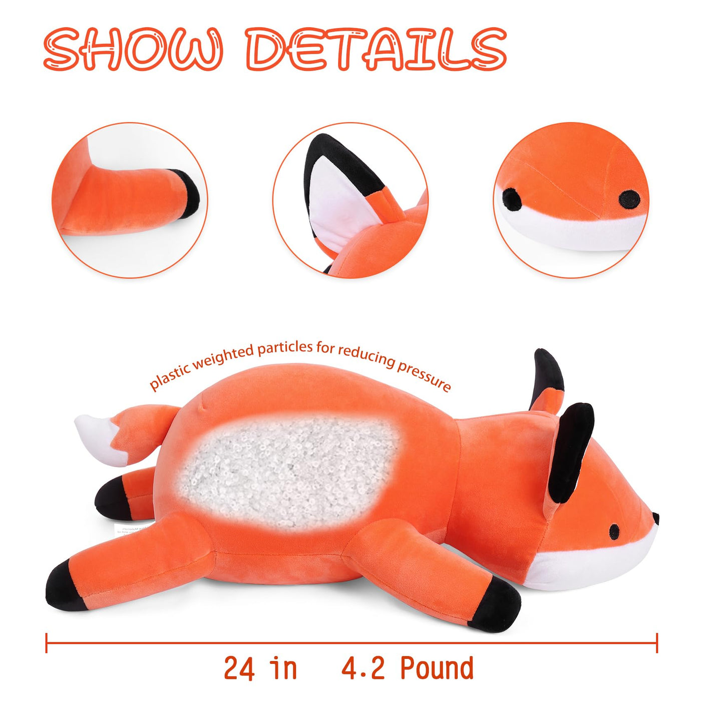 Ourhonor Weighted Stuffed Animals, 4.2Lb Weighted Fox Plush, 24In Giant Fox Throw Pillow Soft Plushie Doll Toy Gifts