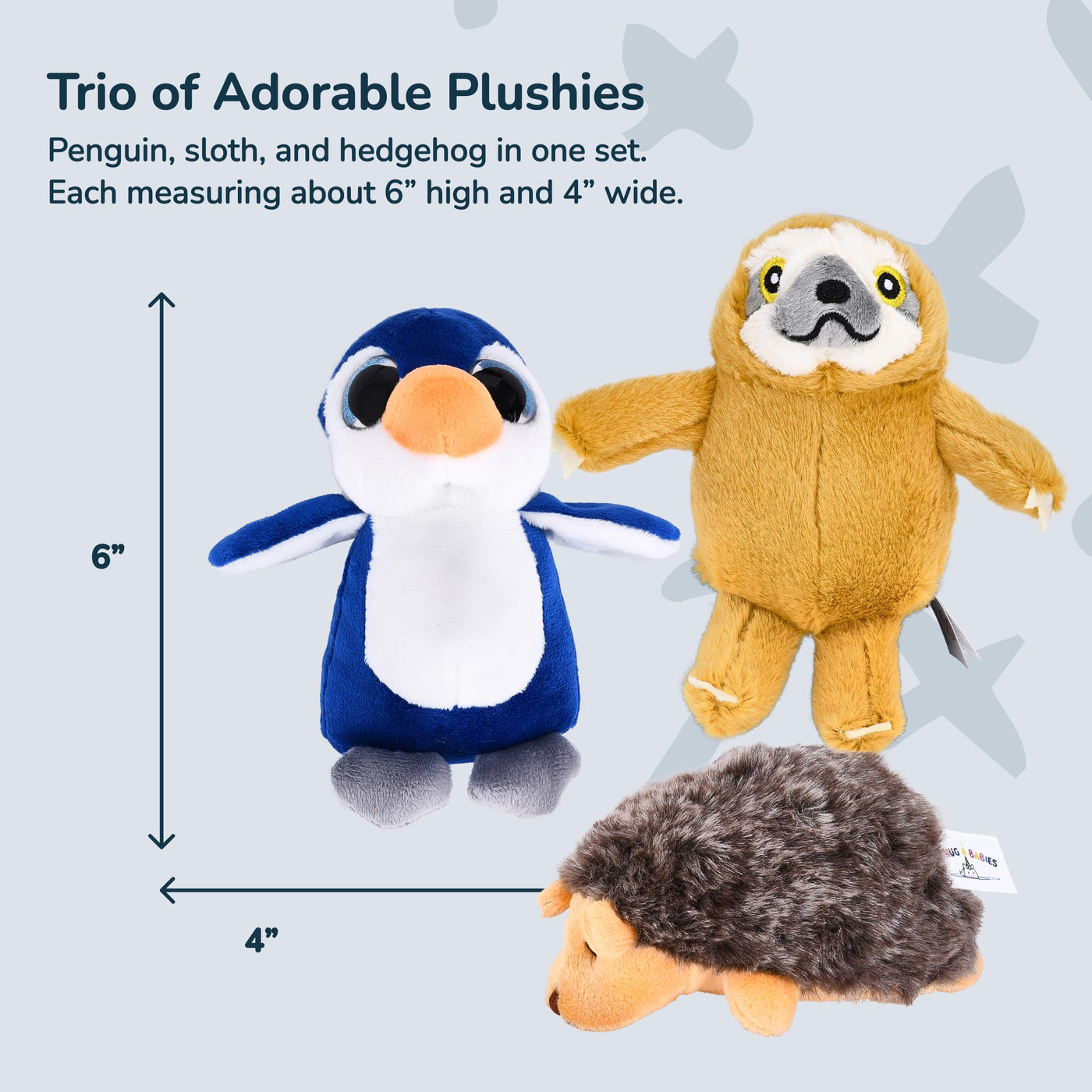 Pixiecrush Stuffed Anmials - Penguin, Sloth, And Hedgehog - Soft Polyester Stuffed Animals Plush Toys - Kids' Adorable Plushie T
