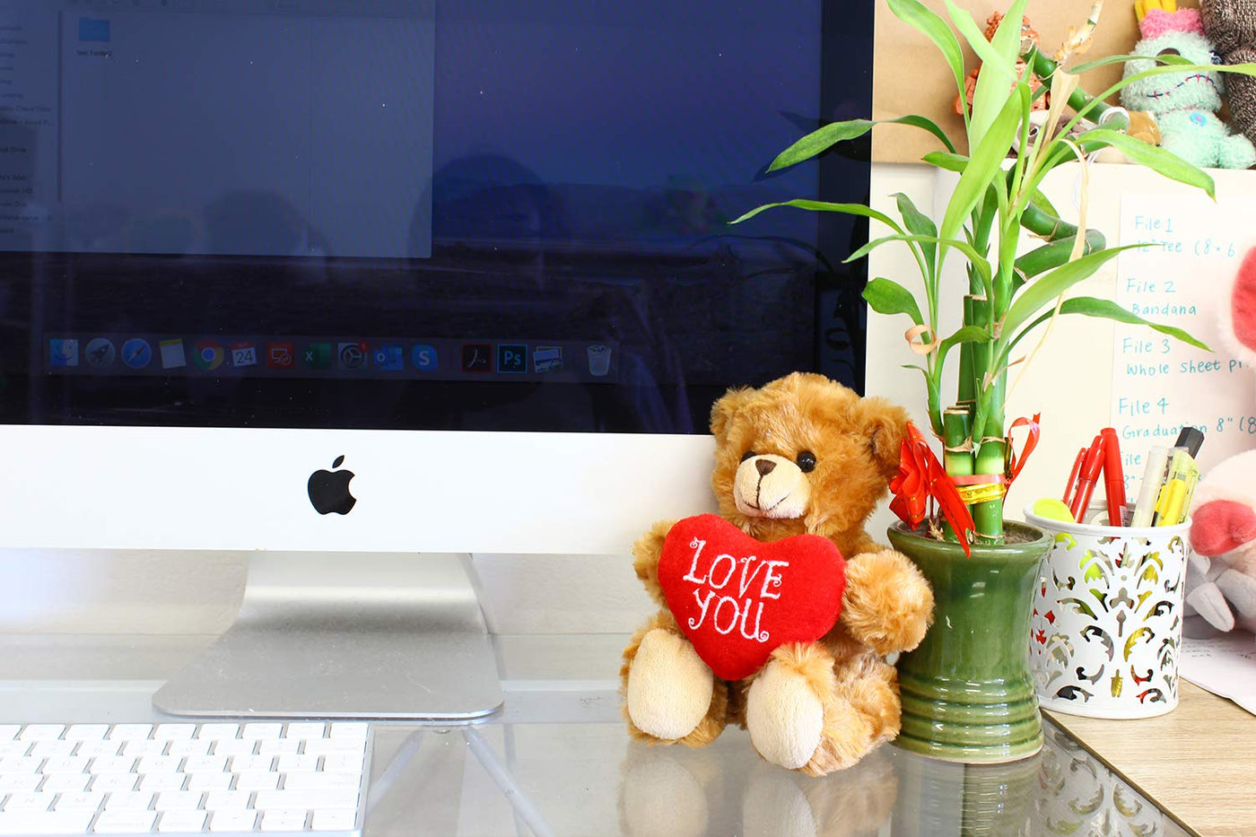 Q: How do I clean the Plushland Stuffed Mocha Heart Bear?A: The bear features surface-washable construction, which allows for easy cleaning. Simply use a damp cloth to wipe it down as needed.