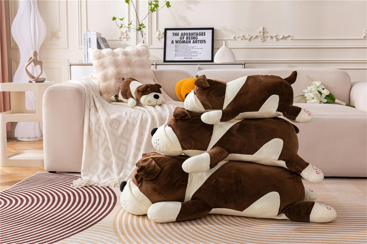 Q: Is the Giant Plush Dog Pillow suitable for both kids and adults?A: Yes, this large brown dog plushie is designed for both kids and adults, making it a versatile cuddling pillow for anyone looking to add comfort and decor to their bed or couch.