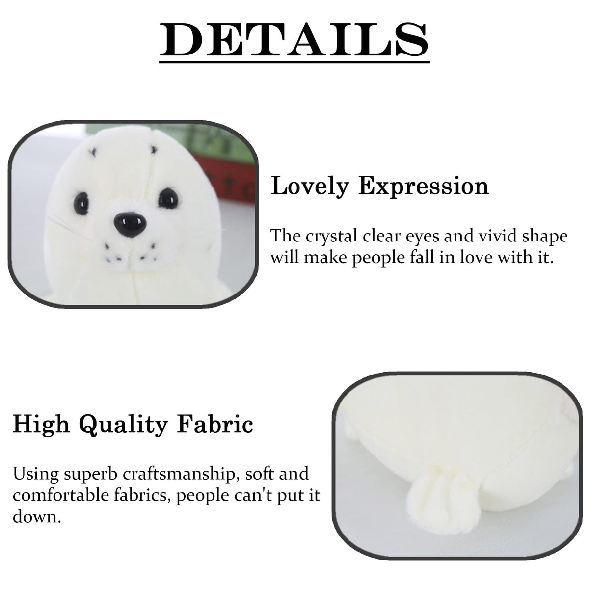 Seal Plush Stuffed Animal White Cute Toy Pillow Kawaii Doll For Kids, 9 Inch