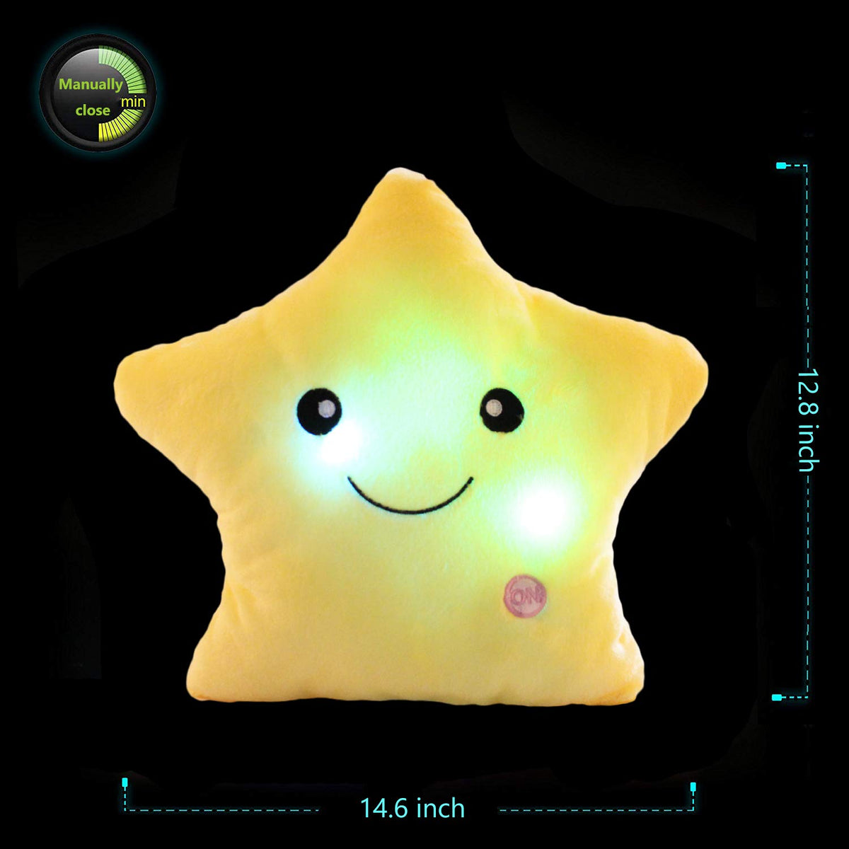 Sofipal Creative Twinkle Star Shaped Plush Pillow, Led Night Light Glowing Cushions Plush Stuffed Toys Gifts For Kids, Decoratio