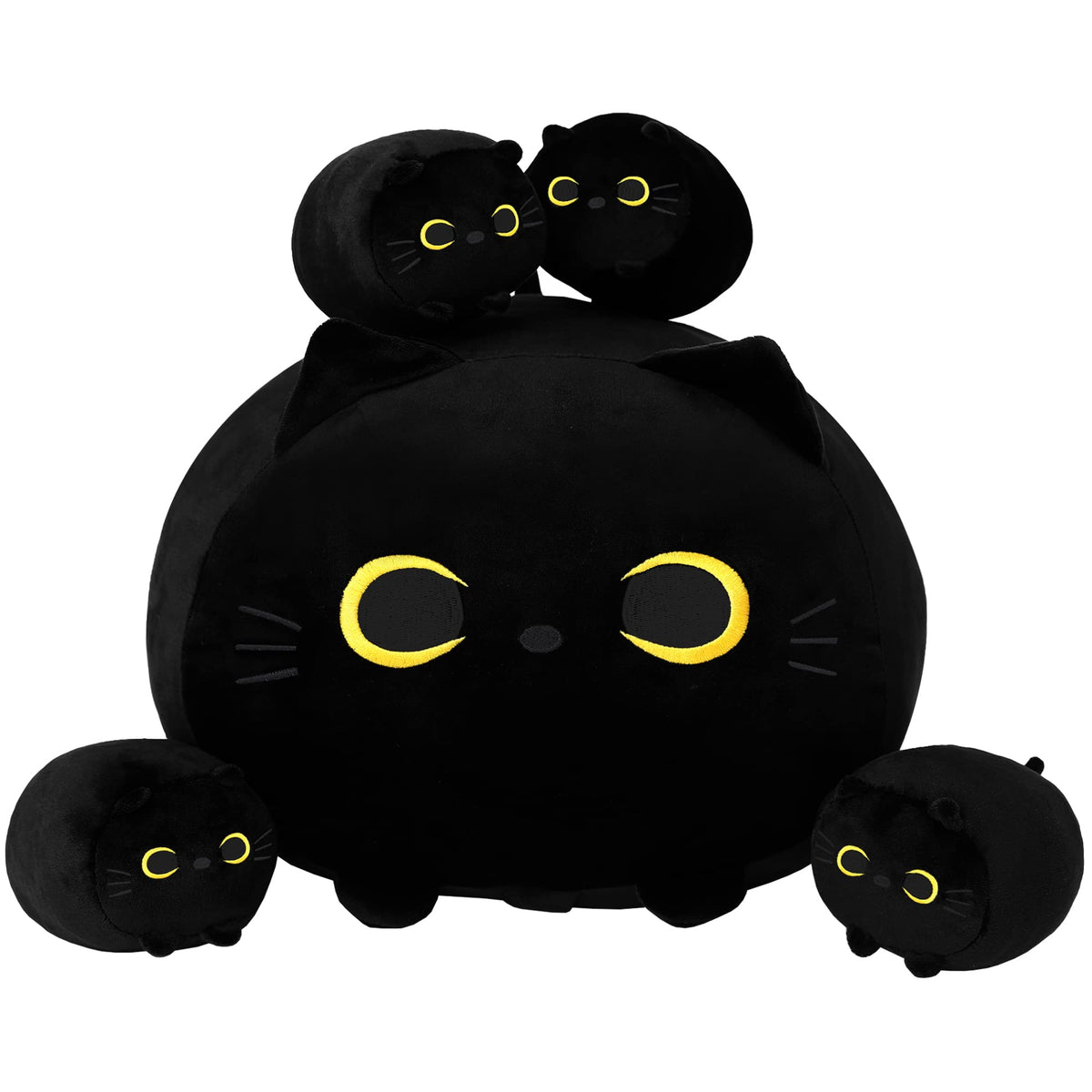 Sqeqe Black Cat Plush, Stuffed Animal Black Cat Plushie With 4 Cute Baby Cat Plushies In Her Tummy, Soft Black Cat Plushie Pillow Gifts For Kids. A Cute And Adorable Baby Cat Is Waiting For Its Owner To Bring It Home. A Perfect Gift The Black Cat Stuffed Animal Toy Is A Valentine'S Day Gift For My Girlfriend, But Also A Gift For The Kids. It Will Bring Good Luck To The Lovely Kids. Cat Plushie Toys Will Not Only Entertain The Kids But Also Be Used As Neck Pillows, Backrest Pillows, And Car Pillows. Soft And Comfortable This Black Cat Plush Toy Is Filled With Pp Cotton, Safe And Durable, Soft And Skin-Friendly, And The Perfect Size For Play And Cuddles. Vacuum-Packed This Cat Plush Doll Toy Will Look Very Different From The Picture We Show When It Comes Out Of The Vacuum Bag, Don'T Worry The Cat Pillow Will Return To Its Original Shape Within An Hour Or So Of Being Taken Out, Patting The Plush Toy Gently On The Back Or Let It Bask In The Sun. The Use Of Safe We Have Been Adhering To The Concept Of Safety To Do Every Product, So That Your Baby And Children With Peace Of Mind, Every Cute Doll Pillow Has Undergone Many Quality Inspections. This Is A Quality-Guaranteed Black Cat Doll Pillow.To Provide Your Children With Warm Soft Plush Toys. Easy To Clean Use Soap To Clean It. Do Not Use A Washing Machine To Wash It. Because The Cat Plushie Toy Is Black All Over, It Is More Resistant To Dirt. We Recommend Washing It At 30 C Constant Temperature, Then Drying It With A Dryer And It Will Restore To Its Original Fat Shape.