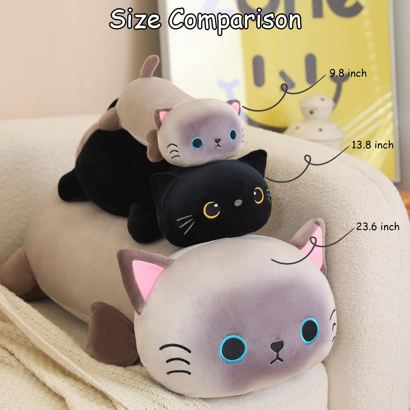 Welcome To The Sqeqe Family! Funny Kitty Plush Weighted Toy ?Safe &Amp; Non-Toxic ?Machine-Washable ?A Perfect Gift Idea We Provide You With A Multiple-Size Weighted Black Cat Plush Toy, Small-9.8 Inches, Medium-13.8 Inches, And Large-23.6 Inches, Which Can Meet All Your Needs. A Giant Black Cat Stuffed Animal Is The Perfect Decoration For Bedrooms, Living Rooms, Offices Anywhere. Meanwhile A Popular Gift For Families, Lovers, Or Children At Halloween, Christmas, Valentine'S, And Birthdays. Super Soft Black Cat Pillow The Kawaii Pillow Toy Is Made Of Short Plush And Pp Cotton, Perfect For Cuddling And Hugging. The Plushie Toy As A Good Companion Can Make You Feel Really Relaxed And Enjoyable. Superb Workmanship Black Cat Plushie Is Made With Super-Soft Plush Material And High-Density Stuffing That Ensures Our Plushies Maintain Their Squeezability, Even With Repeated Hugs! Heavy Weighted Black Cat Design Cute Black Cat Stuffed Animal, No One Can Resist His Charm. All Bad Emotions And Work Stress Will Disappear When You Embrace Black Cat Plushies Toys. Kids, Teens, And Adults Love These Classic And Collectible Comfy Critters. Vacuum-Packed Plush Black Cat Stuffed Animals, Vacuum-Packed Cute Animal Pillow, After Opening The Package, Gently Knead The Plush With Your Hands To Disperse The Stuffing. Put The Plush Pillow In A Ventilated Space To Make Your Anime Plush Doll Fuller. Note: It May Take 1-2 Days For The Vacuum-Packed Kitten Plush Doll To Restore Its Original Appearance, Please Be Patient.