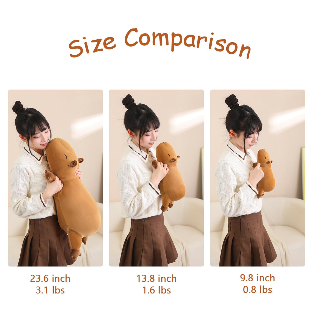Welcome To Weighted Capybara Stuffed Animal Toys! Safe &Amp; Non-Toxic Machine-Washable A Perfect Gift Idea We Provide You With A Multiple-Size Weighted Capybara Plush Toy, Small-9.8 Inches, Medium-13.8 Inches, And Large-23.6 Inches, Which Can Meet All Your Needs. Large Capybara Plushies Is The Perfect Decoration For Bedrooms, Living Rooms, Offices Anywhere. Meanwhile A Popular Gift For Families, Lovers, Or Children At Halloween, Christmas, Valentine'S, And Birthdays. Funny Capybara Pillow The Kawaii Pillow Toy Is Made Of Short Plush And Pp Cotton, Perfect For Cuddling And Hugging. The Plushie Toy As A Good Companion Can Make You Feel Really Relaxed And Enjoyable. Superb Workmanship Capybara Plushie Is Made With Super-Soft Plush Material And High-Density Stuffing That Ensures Our Plushies Maintain Their Squeezability, Even With Repeated Hugs! Heavy Weighted Capybara Design Cute Capybara Stuffed Animal, No One Can Resist His Charm. All Bad Emotions And Work Stress Will Disappear When You Embrace Capybara Plush Toys. Kids, Teens, And Adults Love These Classic And Collectible Comfy Critters. Vacuum-Packed Plush Capybara Stuffed Animals, Vacuum-Packed Cute Animal Pillow, After Opening The Package, Gently Knead The Plush With Your Hands To Disperse The Stuffing. Put The Plush Pillow In A Ventilated Space To Make Your Anime Plush Fuller. Note: It May Take 1-2 Days For The Vacuum-Packed Weird Plush Doll To Restore Its Original Appearance, Please Be Patient.