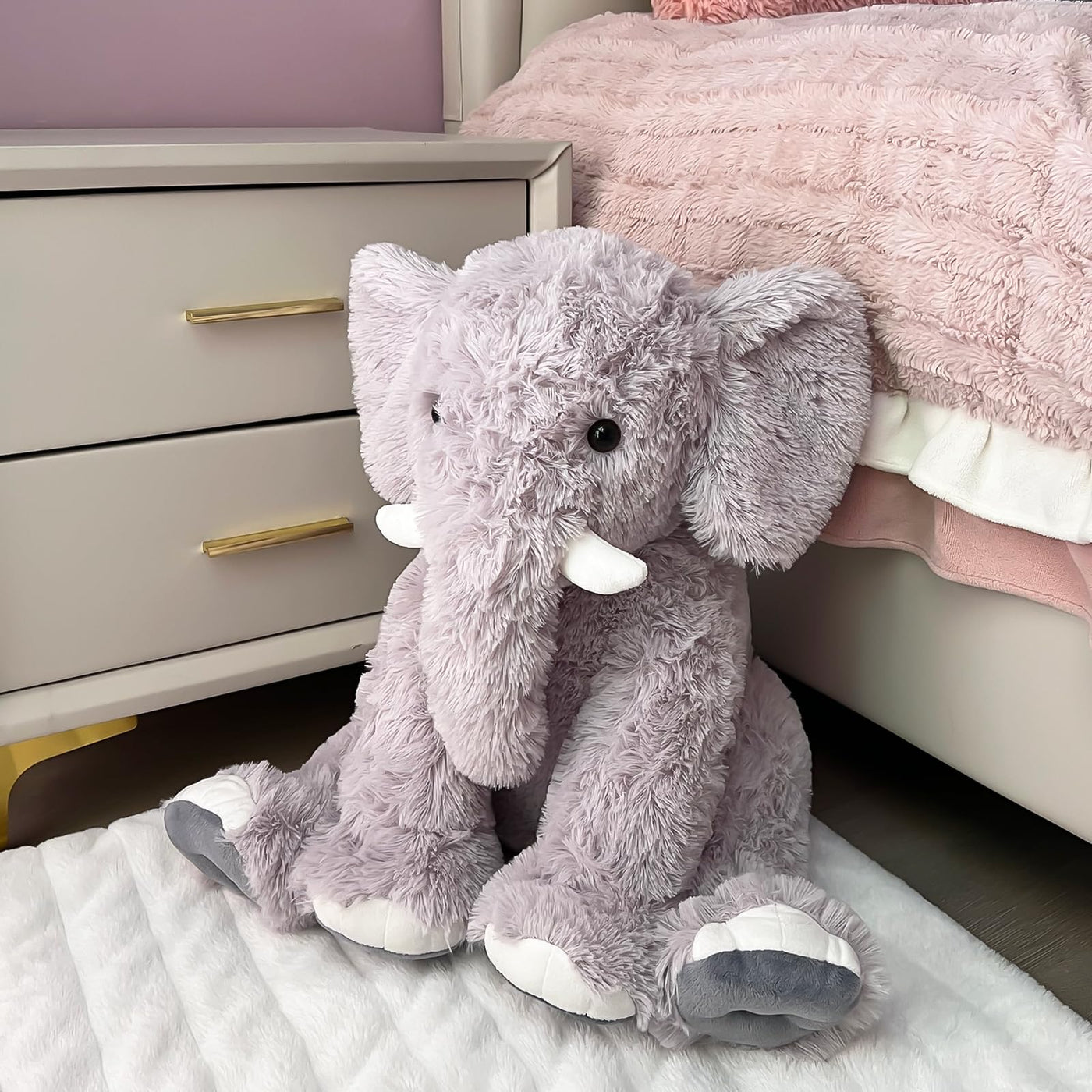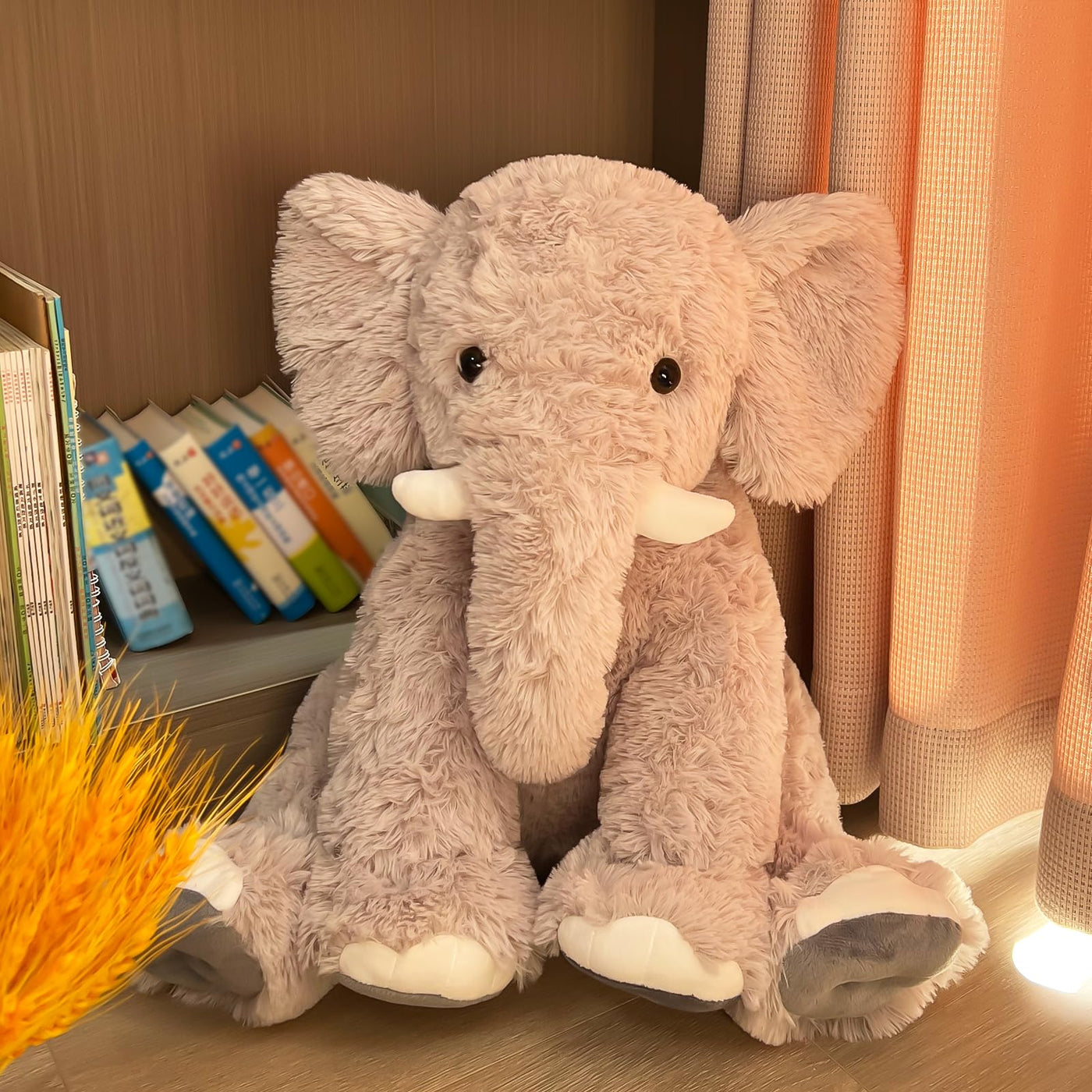 Q: What occasions is this plush elephant suitable for?A: This plush elephant is perfect for various occasions such as playtime, sleep, and room decoration. It serves as a warm companion, providing comfort when tired.