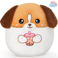 Wewill 12 Cute Soft Puppy Plush Pillow Drinking Boba Tea Adorable Dog Stuffed Animal Pillow Birthday Valentines Holiday Gifts For Toddler Kids Boys Girls