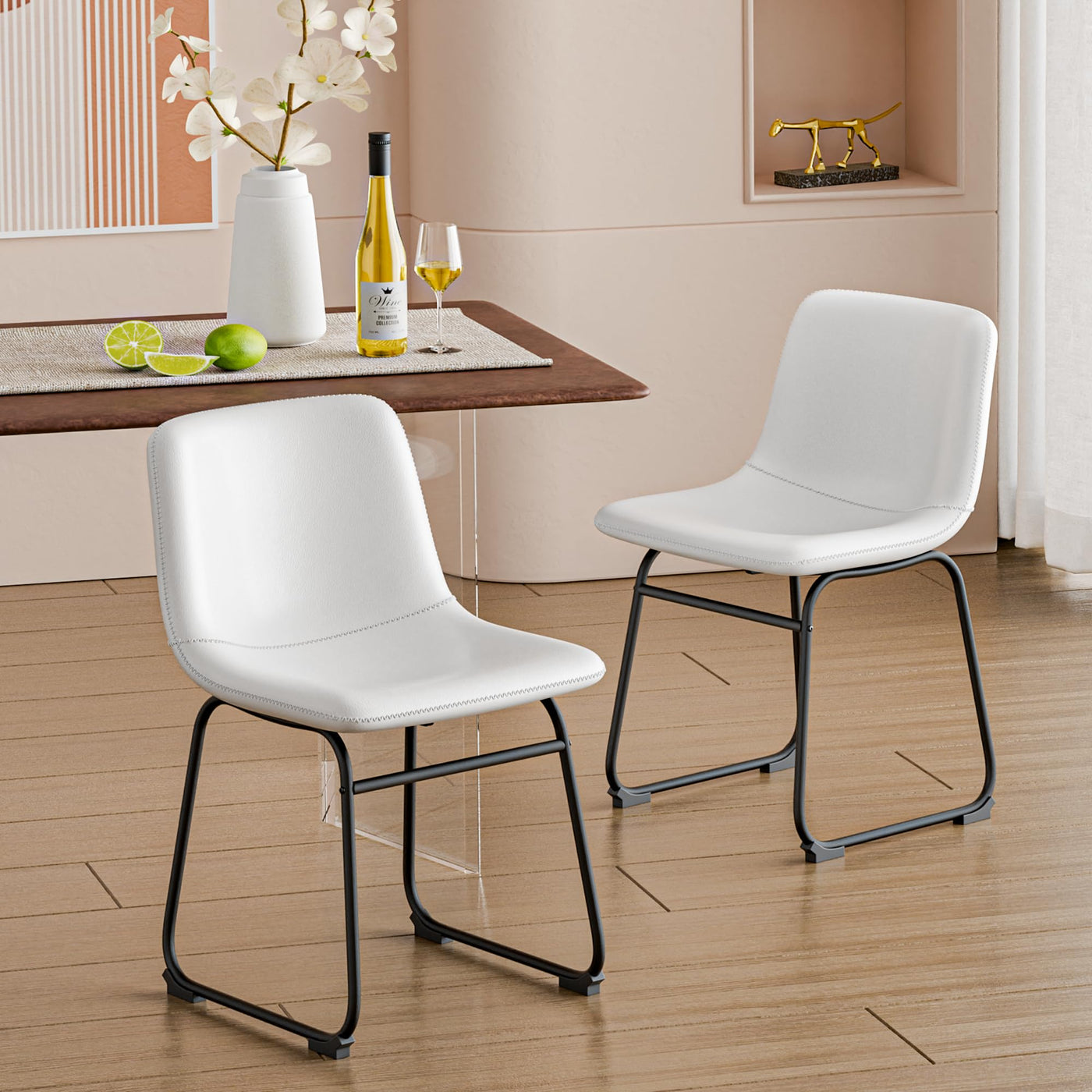 Aowos Dining Chairs Set Of 2, 18 Inch Modern Armless Dining Chair With Back, Faux Leather Kitchen Dining Room Chair With Metal L