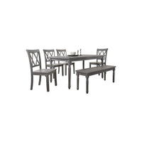 Best Master Furniture 6 Pcs Dining Set With Bench, Rustic Grey