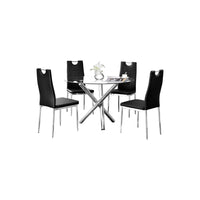 Includes: 1 Table + 4 Side Chairs. Table Is Made Of Glass With Chrome Legs. Table Top Is In A Round Shape 43 X 43. Chairs Are Upholstered In Faux Leather And Legs Are Made Of Chrome. All Legs Of The Chairs Include Plastic Caps To Prevent Floor From Being Scratched. Modern And Contemporary Style. Table Can Fit Up To 4 Chairs. Table Dimension 43"L X 43"D X 30"H. Side Chair 17"L X 20"D X 38. 5"H. Seat Height 18. 5. Seat Depth 17. This Product Will Ship To You In Multiple Boxes. Assembly Required
