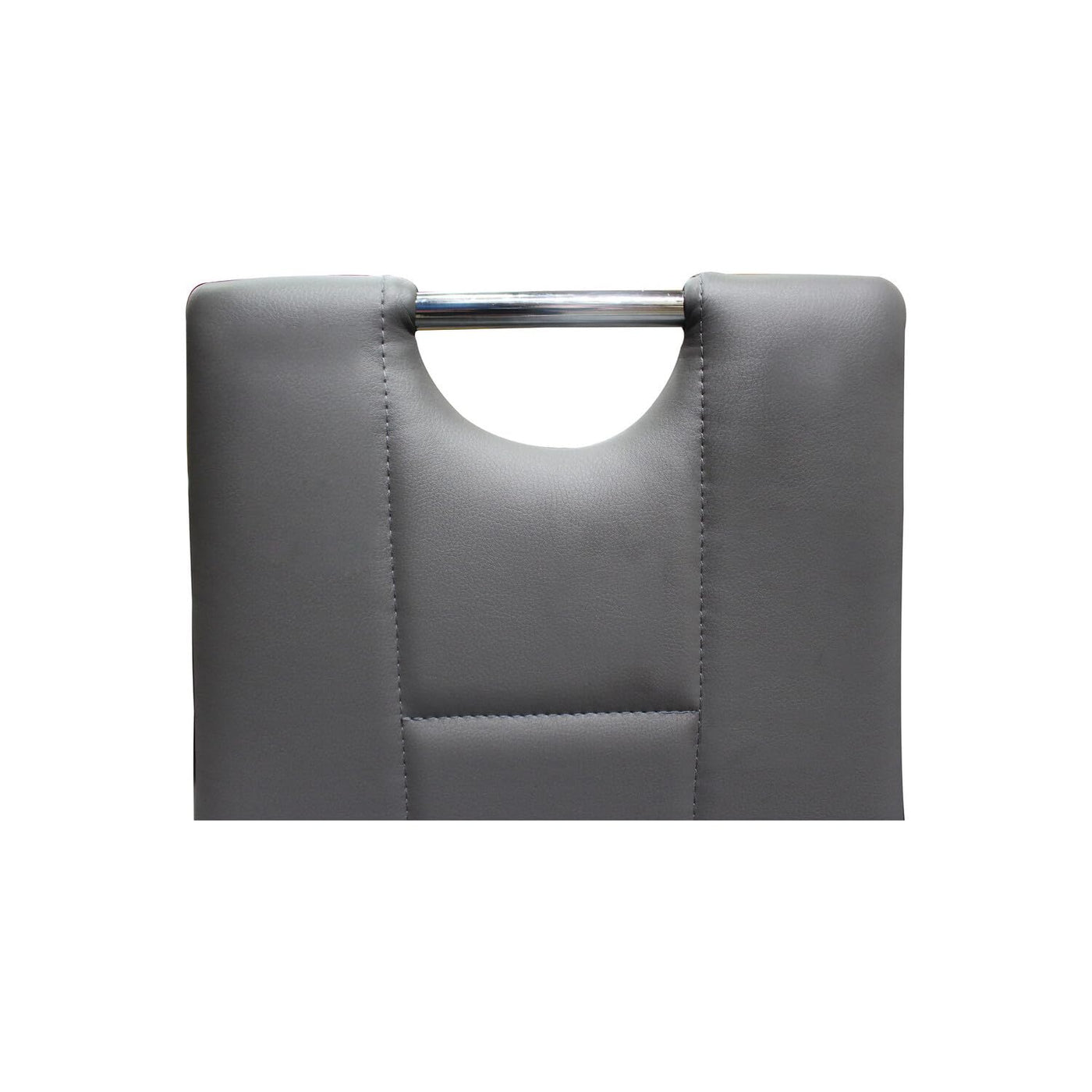 A High Back Provides Full Support For Your Spine And Shoulders, Allowing You To Relax Easily. Chrome Handle For Easy To Maneuver Your Seating. Gentle Padding Under The Soft And Smooth Faux Leather Upholstery Provides A Soft Cushion, Ensuring A Superior Comfort To Your Back. Coordinating Grey Faux Leather Upholstery And A Chrome Base Metal Frame Emits Sophistication And Class.