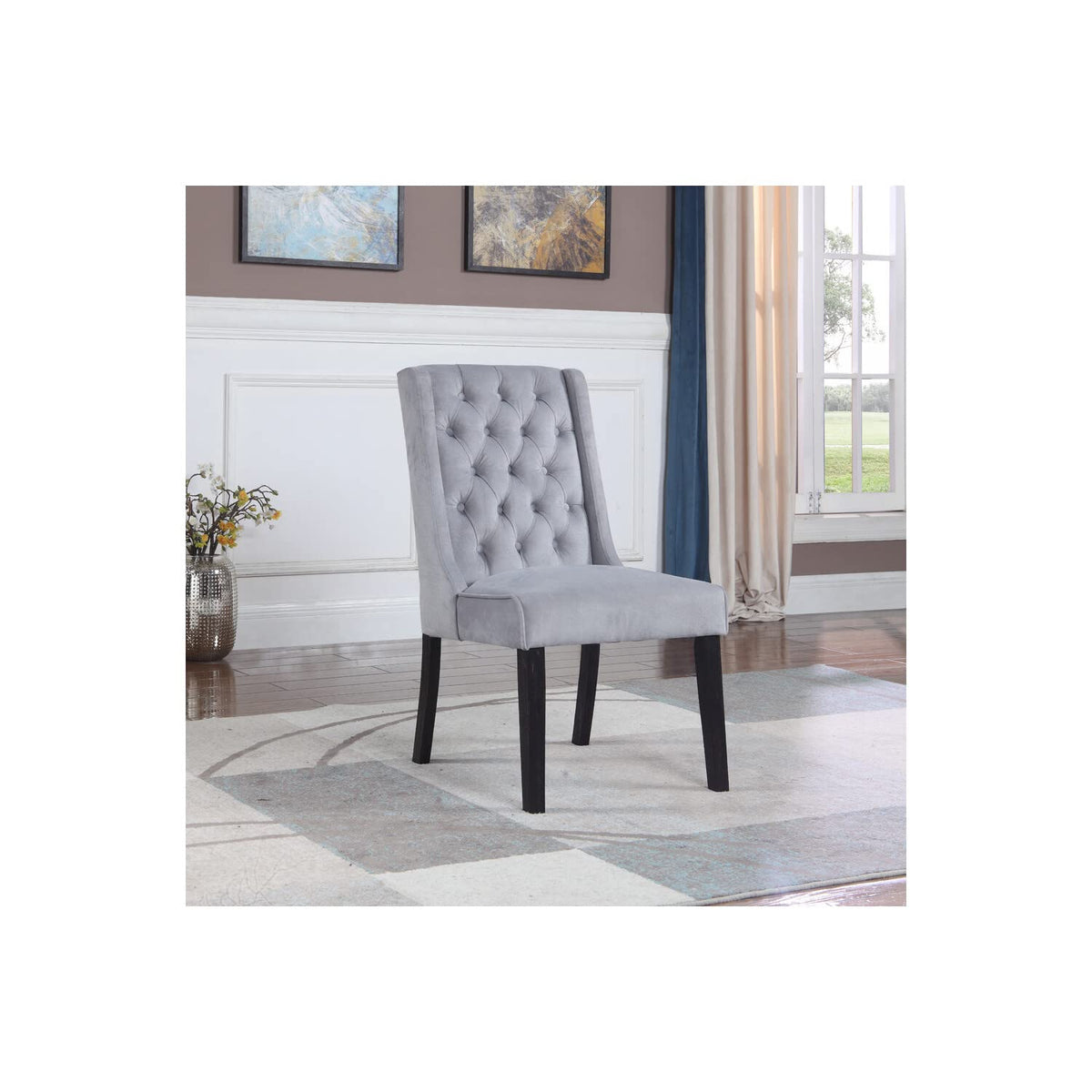 Best Master Furniture Newport Contemporary Tufted Wingback Dining Chair Set Of 2, Grey