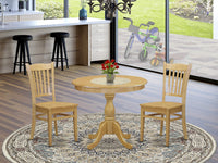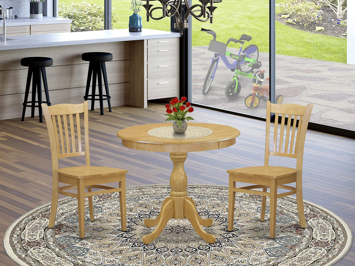 East West Furniture AMGR3-OAK-W 3 Piece Dining Table Set for Small Spaces Contains a Round Kitchen Table with Pedestal and 2 Dining Chairs, 36x36 Inch, Oak