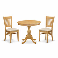 East West Furniture AMVA3-OAK-C 3 Piece Dining Room Table Set Contains a Round Wooden Table with Pedestal and 2 Linen Fabric Kitchen Dining Chairs, 36x36 Inch, Oak