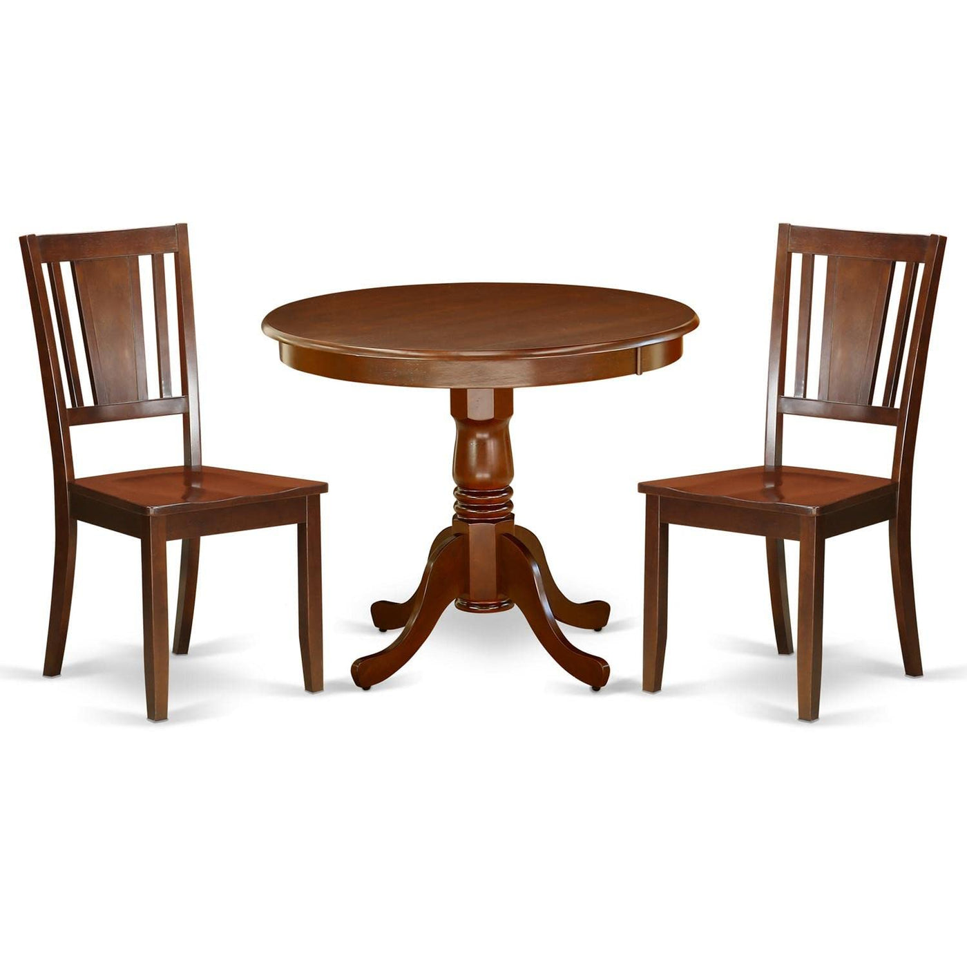 East West Furniture Andu3-Mah-W 3 Piece Dining Set Contains A Round Kitchen Table With Pedestal And 2 Dining Room Chairs, 36X36 Inch, Mahogany