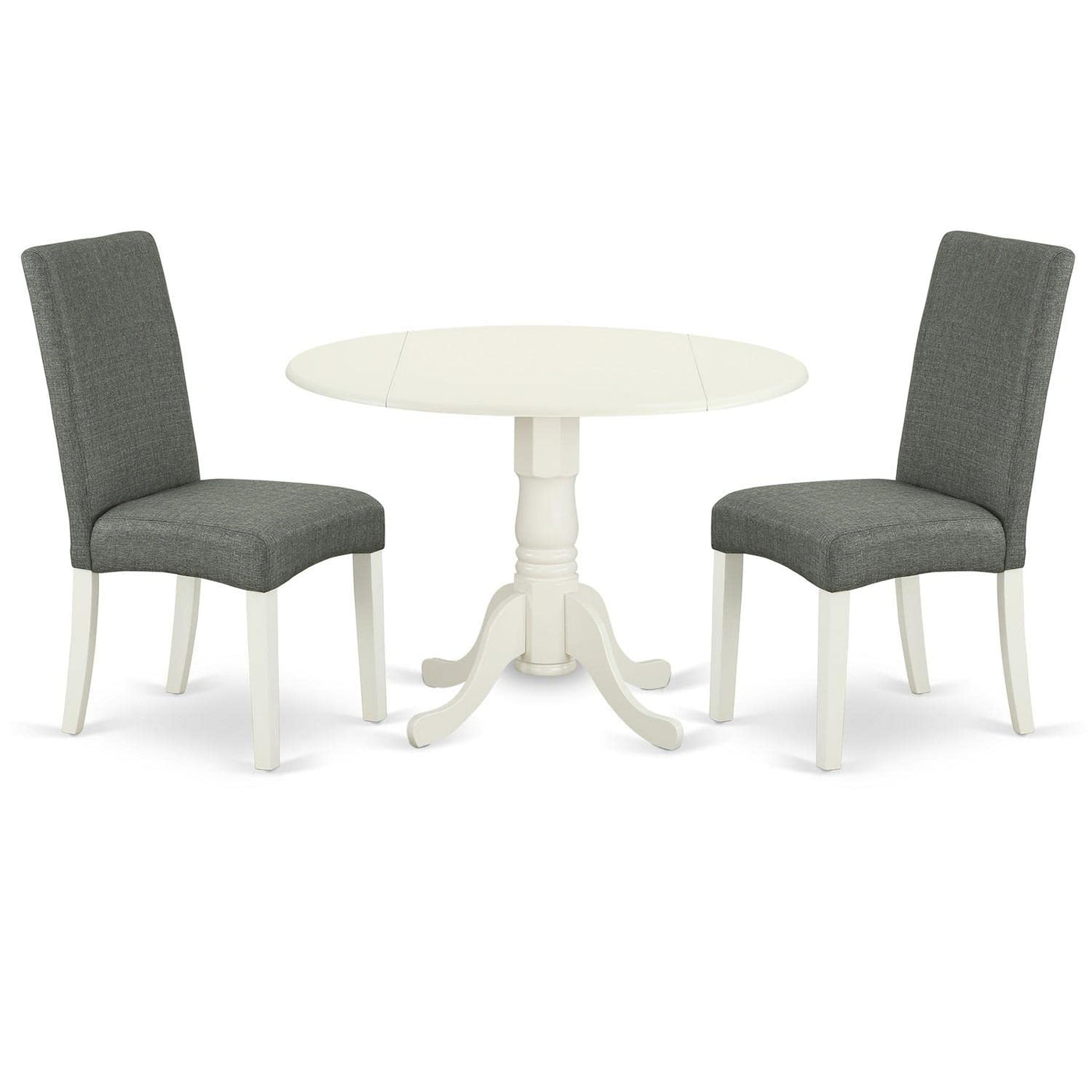 East West Furniture Dldr3-Lwh-07 3 Piece Kitchen Table & Chairs Set Contains A Round Dining Room Table With Dropleaf And 2 Gray Linen Fabric Parsons Dining Chairs, 42X42 Inch, Linen White