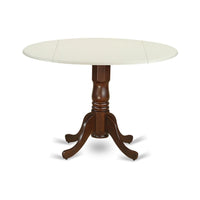 East West Furniture Dlt-Lma-Tp Dublin Modern Kitchen Table - A Round Dining Table Top With Dropleaf & Pedestal Base, 42X42 Inch, Linen White & Mahogany