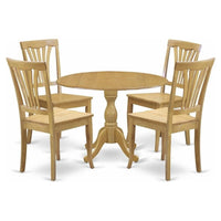 East West Furniture DMAV5-OAK-W 5 Piece Dinette Set for 4 Includes a Round Dining Room Table with Dropleaf and 4 Kitchen Dining Chairs, 42x42 Inch, Oak
