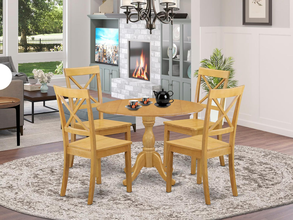 East West Furniture DMBO5-OAK-W 5 Piece Kitchen Table & Chairs Set Includes a Round Dining Table with Dropleaf and 4 Dining Room Chairs, 42x42 Inch, Oak
