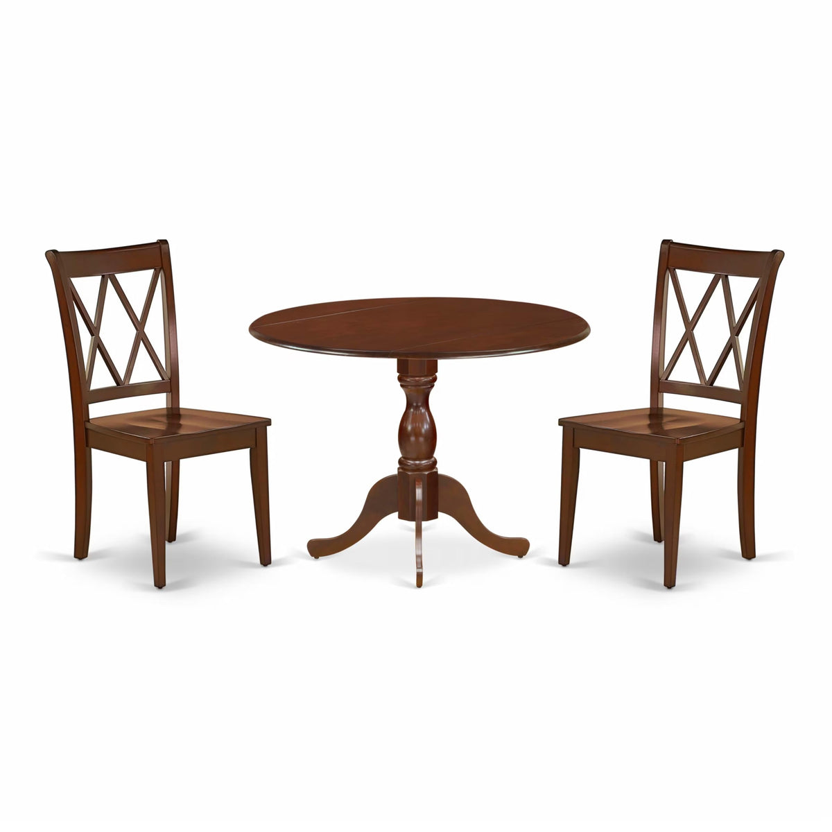 East West Furniture DMCL3-MAH-W 3 Piece Dining Room Furniture Set Contains a Round Kitchen Table with Dropleaf and 2 Dining Chairs, 42x42 Inch, Mahogany