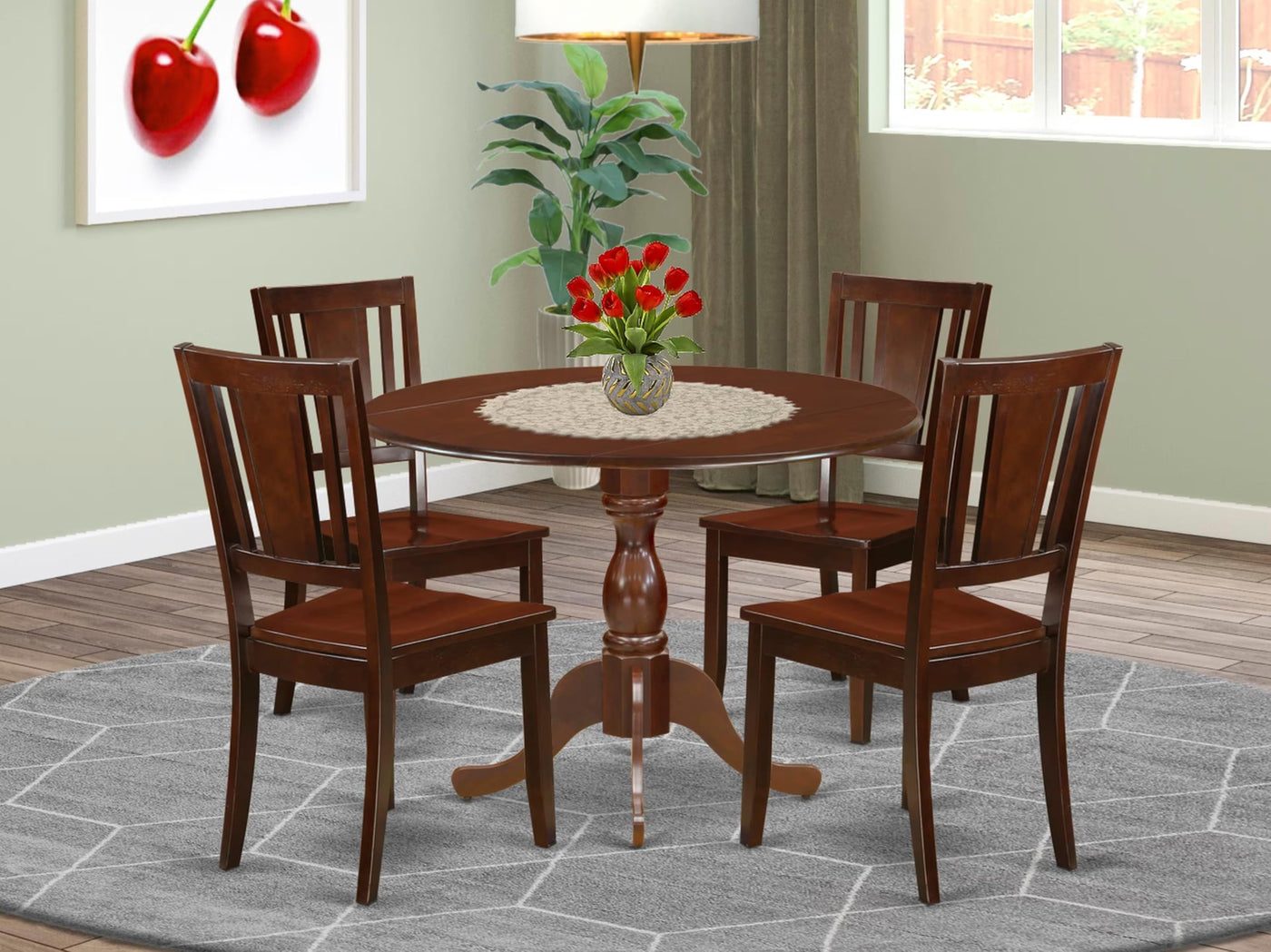 East West Furniture DMDU5-MAH-W 5 Piece Dining Set Includes a Round Dining Table with Dropleaf and 4 Kitchen Chairs, 42x42 Inch, Mahogany