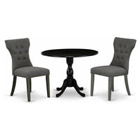 East West Furniture DMGA3-ABK-50 3 Piece Dinette Set for Small Spaces Contains a Round Dining Table with Dropleaf and 2 Dark Gotham Linen Fabric Parson Chairs, 42x42 Inch, Wirebrushed Black