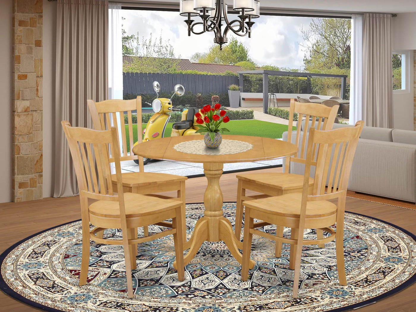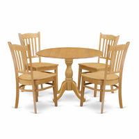 East West Furniture DMGR5-OAK-W 5 Piece Modern Dining Table Set Includes a Round Wooden Table with Dropleaf and 4 Dining Chairs, 42x42 Inch, Oak