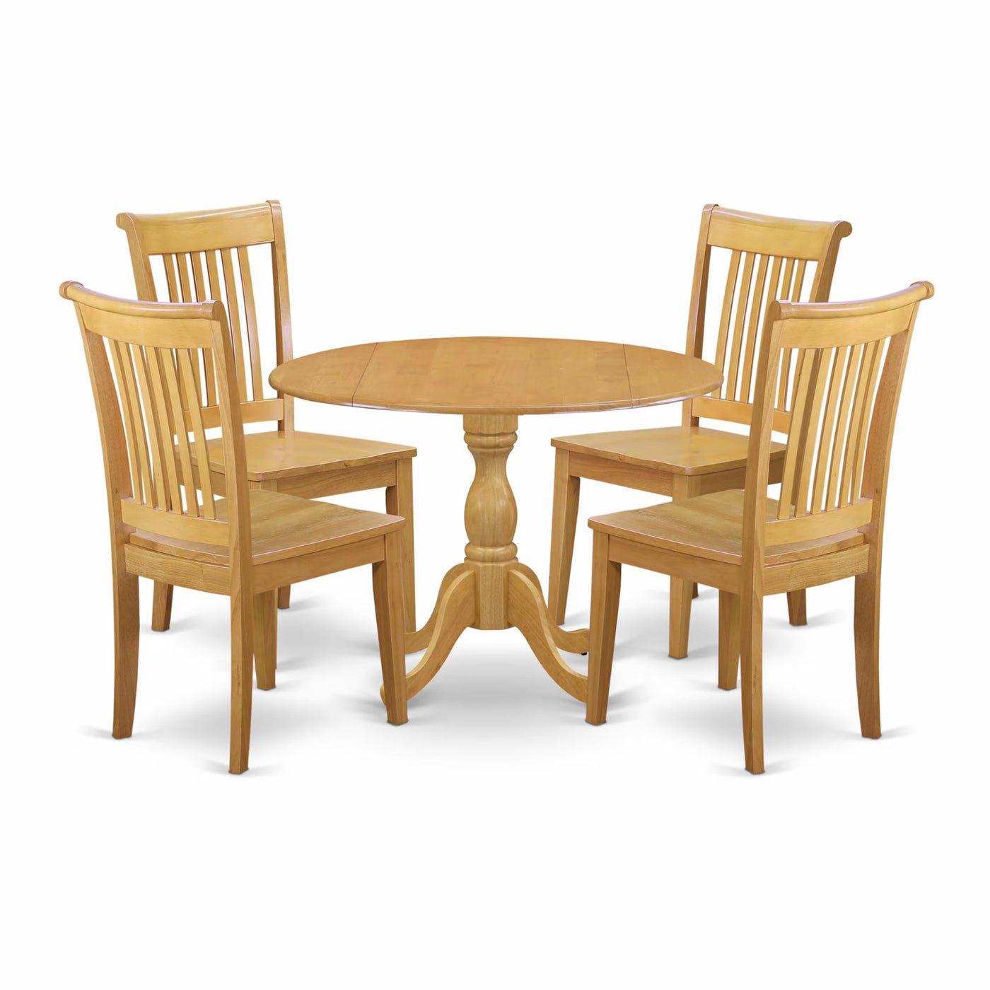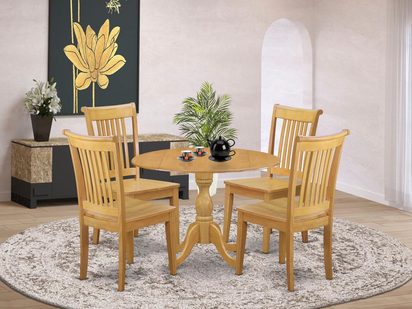 East West Furniture DMPO5-OAK-W 5 Piece Dining Room Furniture Set Includes a Round Kitchen Table with Dropleaf and 4 Dining Chairs, 42x42 Inch, Oak