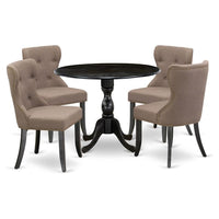 East West Furniture DMSI5-ABK-48 5 Piece Kitchen Table Set for 4 Includes a Round Dining Table with Dropleaf and 4 Coffee Linen Fabric Parson Dining Room Chairs, 42x42 Inch, Wirebrushed Black