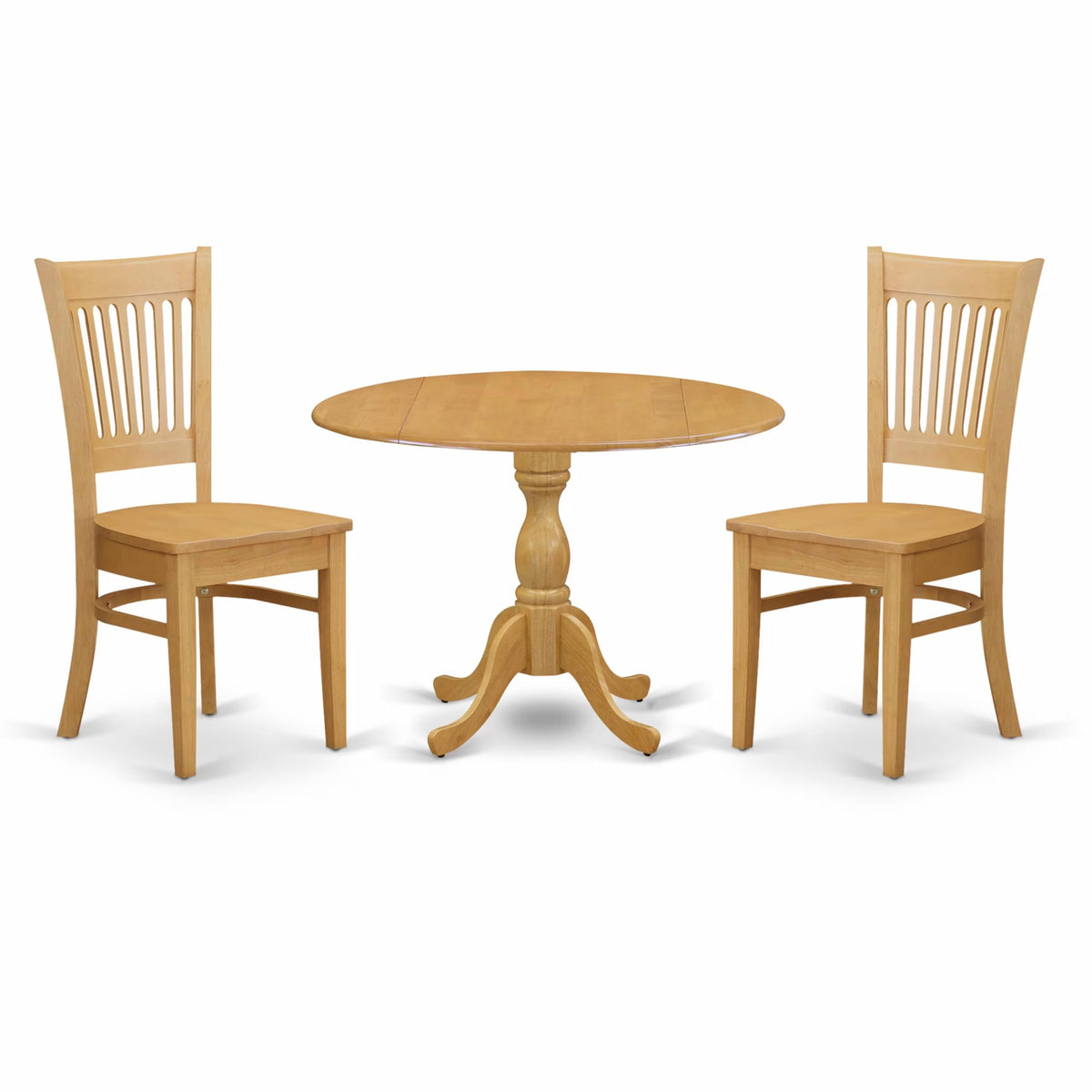 East West Furniture DMVA3-OAK-W 3 Piece Dinette Set for Small Spaces Contains a Round Dining Table with Dropleaf and 2 Dining Room Chairs, 42x42 Inch, Oak