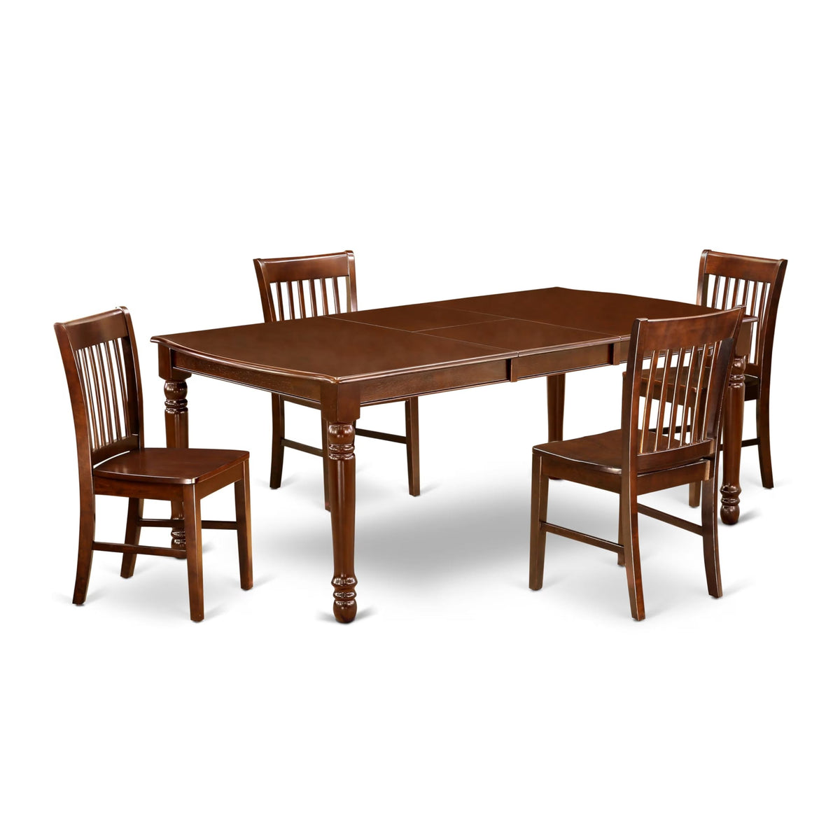 East West Furniture - Dono5-Mah-W 5 Piece Dining Table Settransform The Aesthetic Appeal Of Your Kitchen With A Stunning 5-Piece Dining Set Consisting Of 4 Elegant Kitchen Chairs And A Matching Dinner Table. This Modern Dining Set Boasts A Sleek And Shiny Table Top That Exudes A Distinctly Contemporary Vibe, Making It A Perfect Addition To Your Home Decor. The Standout Feature Of This Dining Set Is Its Mahogany Color Table Top And Legs, Which Beautifully Complement The Kitchen Chair Seats And Legs That Are Finished In The Same Exquisite Hue. Its Timeless Design Effortlessly Blends With Any Room Decor, Making It An Excellent Option For Upgrading Your Dining Space. Made From High-Quality Rubberwood, Also Known As Asian Hardwood, This Set Is Free From Heat-Treated Pressured Wood Such As Mdf, Particleboard, Or Veneer Top. The Stunning Norfolk Dining Room Chair Features A Solid Wood Top That Adds A Touch Of Elegance And Modernity To Any Room. If You'Re Searching For An Affordable, Contemporary, Long-Lasting, And Comfortable Dining Set That Will Provide A Delightful Dining Experience With Your Loved Ones, This Set Could Be A Great Choice.Product Features: Material: Asian Hardwood Color: Mahogany Dimensions: Length: 78/60; Width: 42; Height: 30. Dimensions: Length: 19; Width: 18; Height: 35. Weight Capacity: 300 Lbs.Includes: 1 Rectangular Table And 4 Wooden Chair