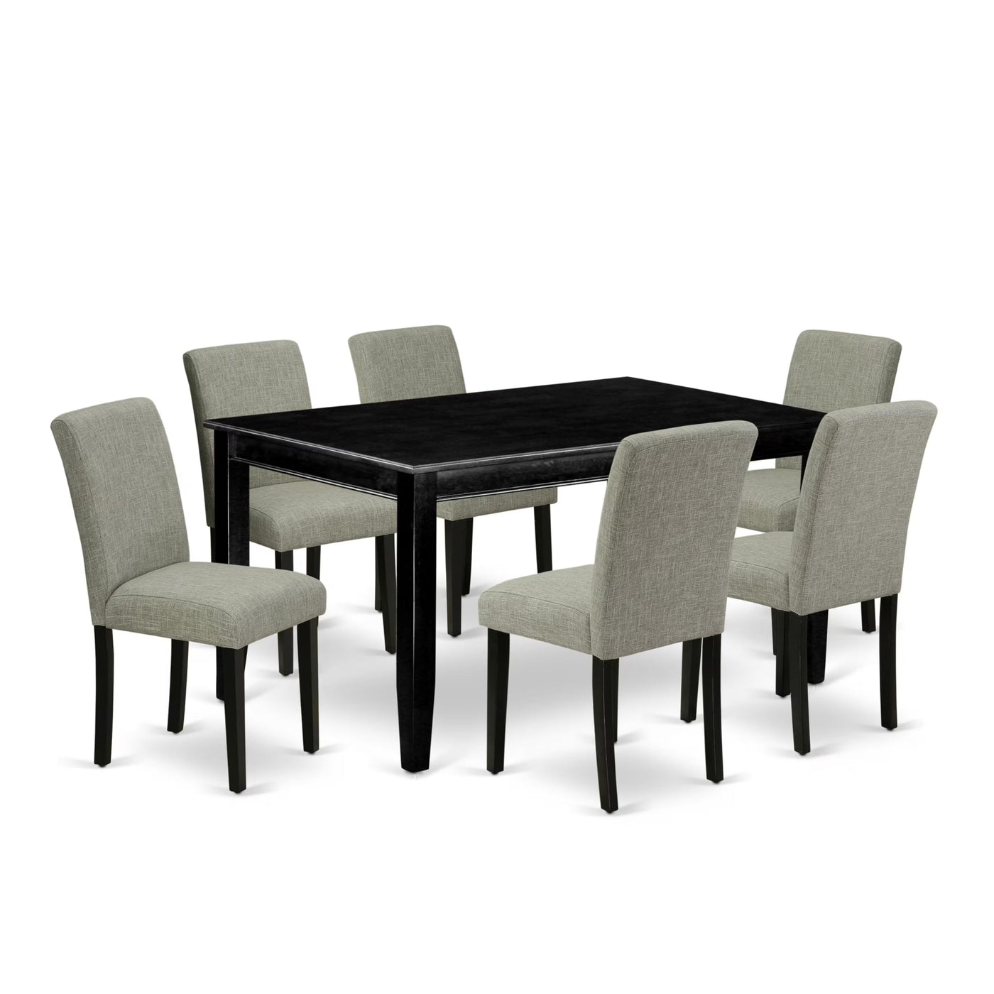 East West Furniture Duab7-Blk-06 7 Piece Dining Room Table Set Consist Of A Rectangle Kitchen Table And 6 Shitake Linen Fabric Parson Dining Chairs, 36X60 Inch, Black