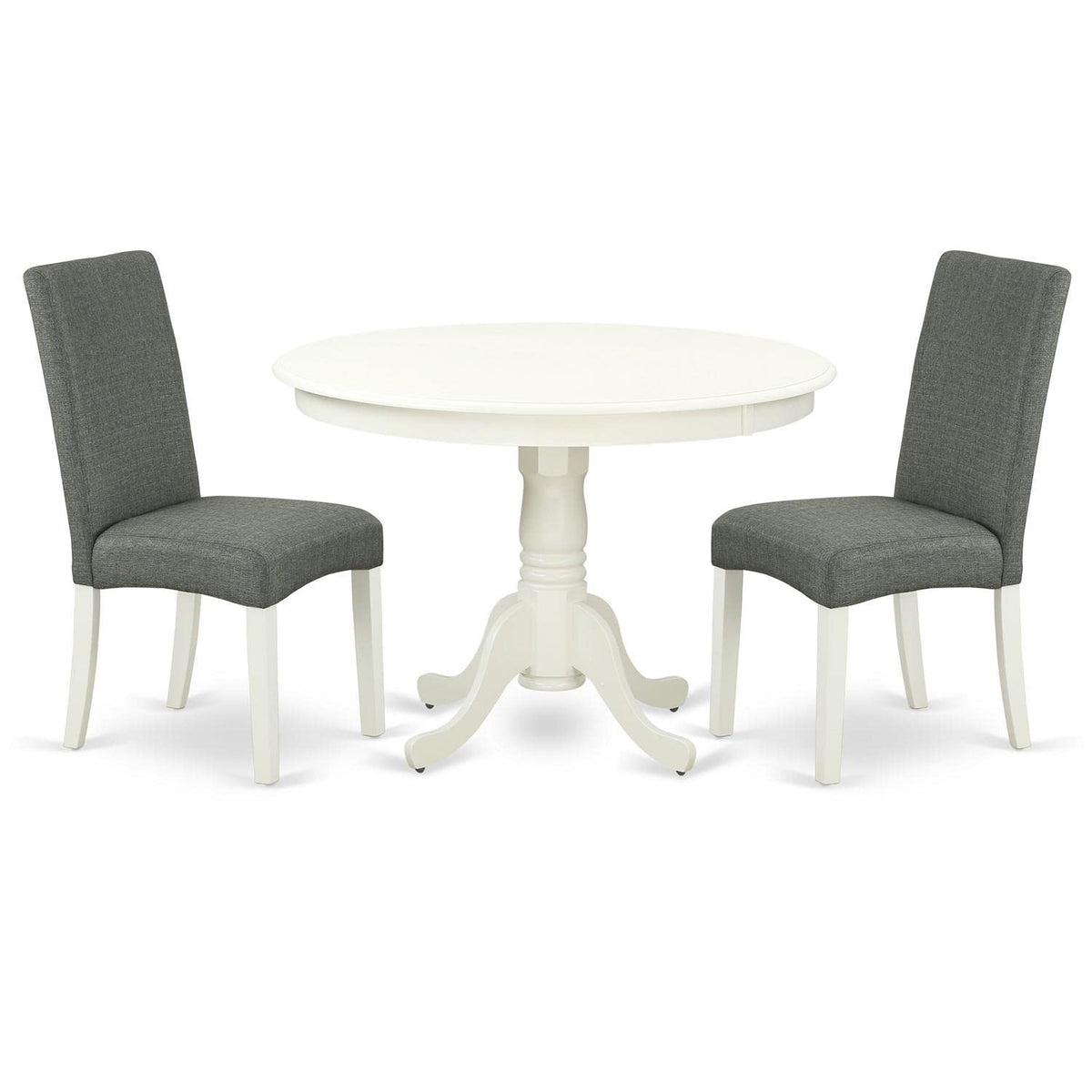 East West Furniture Hldr3-Lwh-07 3 Piece Modern Dining Table Set Contains A Round Wooden Table With Pedestal And 2 Gray Linen Fabric Parsons Dining Chairs, 42X42 Inch, Linen White