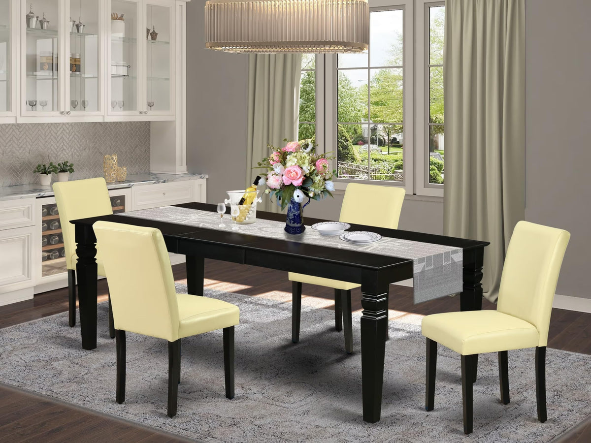 East West Furniture Lgab5-Blk-73 5 Piece Dining Set Includes A Rectangle Dining Room Table With Butterfly Leaf And 4 Eggnog Faux Leather Upholstered Parson Chairs, 42X84 Inch, Black