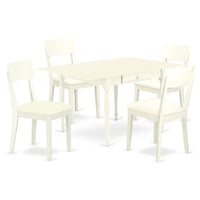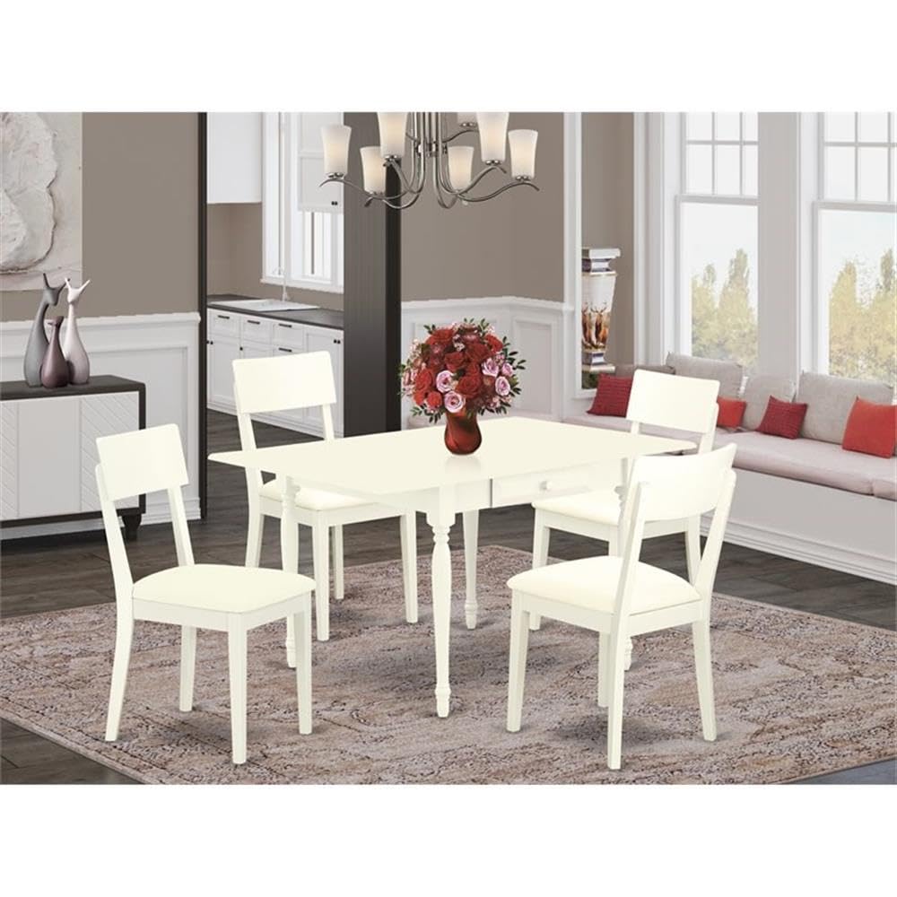 East West Furniture Mzad5-Lwh-Lc 5 Piece Kitchen Table & Chairs Set Includes A Rectangle Dining Room Table With Dropleaf And 4 Faux Leather Upholstered Chairs, 36X54 Inch, Linen White