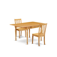 East West Furniture Mzan3-Oak-W 3 Piece Dining Table Set For Small Spaces Contains A Rectangle Dining Room Table With Dropleaf And 2 Wood Seat Chairs, 36X54 Inch, Oak