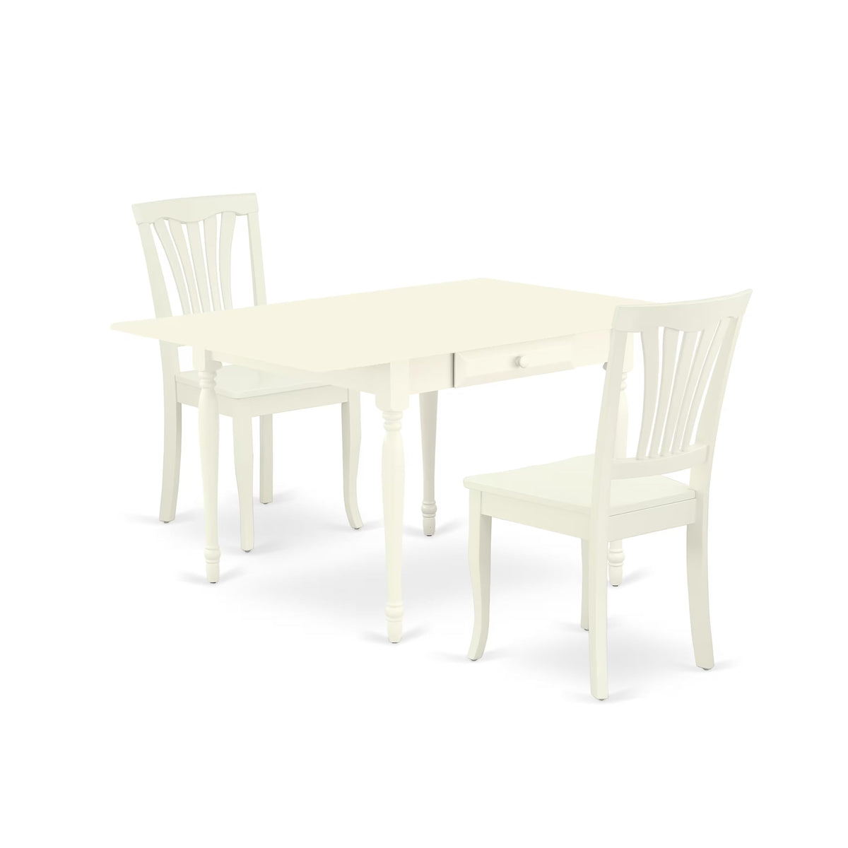 East West Furniture Mzav3-Lwh-W 3 Piece Dinette Set For Small Spaces Contains A Rectangle Dining Table With Dropleaf And 2 Dining Chairs, 36X54 Inch, Linen White