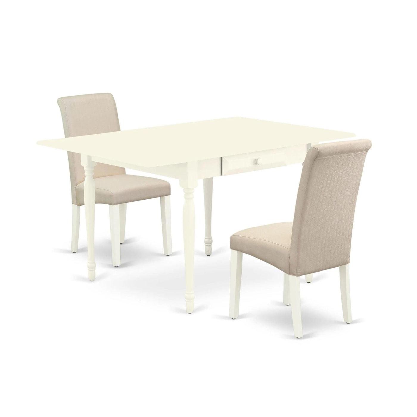 East West Furniture Mzba3-Lwh-01 3 Piece Dining Room Table Set Contains A Rectangle Kitchen Table With Dropleaf And 2 Cream Linen Fabric Parson Dining Chairs, 36X54 Inch, Linen White