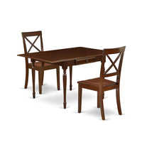 East West Furniture Mzbo3-Mah-W 3 Piece Kitchen Table & Chairs Set Contains A Rectangle Dining Room Table With Dropleaf And 2 Dining Chairs, 36X54 Inch, Mahogany