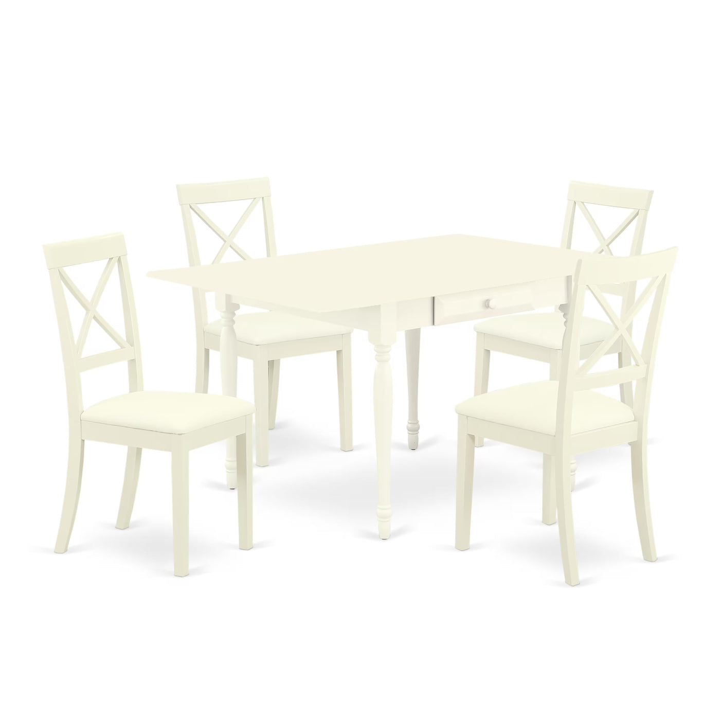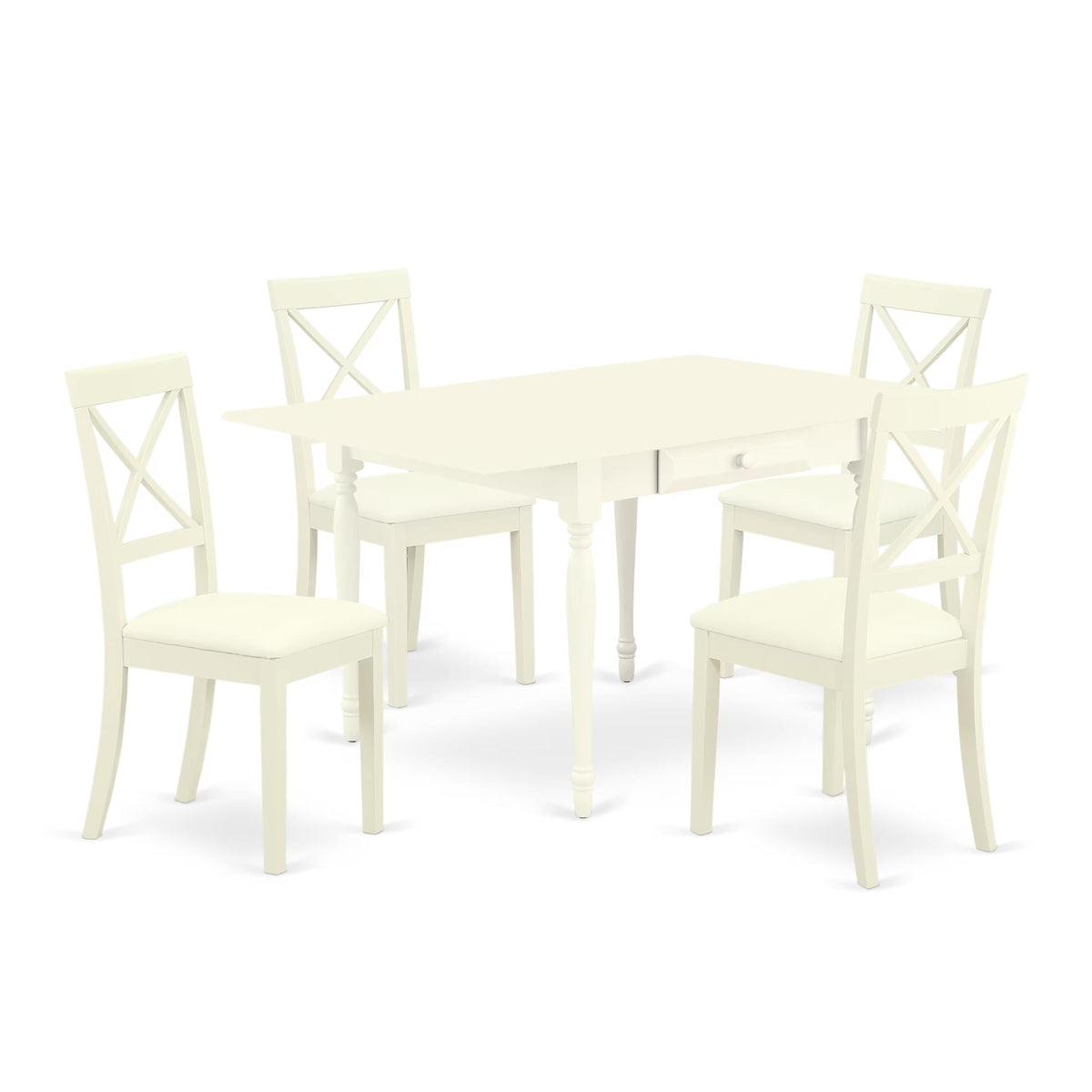 East West Furniture Mzbo5-Lwh-Lc 5 Piece Kitchen Table & Chairs Set Includes A Rectangle Dining Room Table With Dropleaf And 4 Faux Leather Upholstered Chairs, 36X54 Inch, Linen White