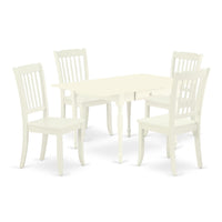 East West Furniture Mzda5-Lwh-W 5 Piece Dining Table Set For 4 Includes A Rectangle Kitchen Table With Dropleaf And 4 Dining Room Chairs, 36X54 Inch, Linen White