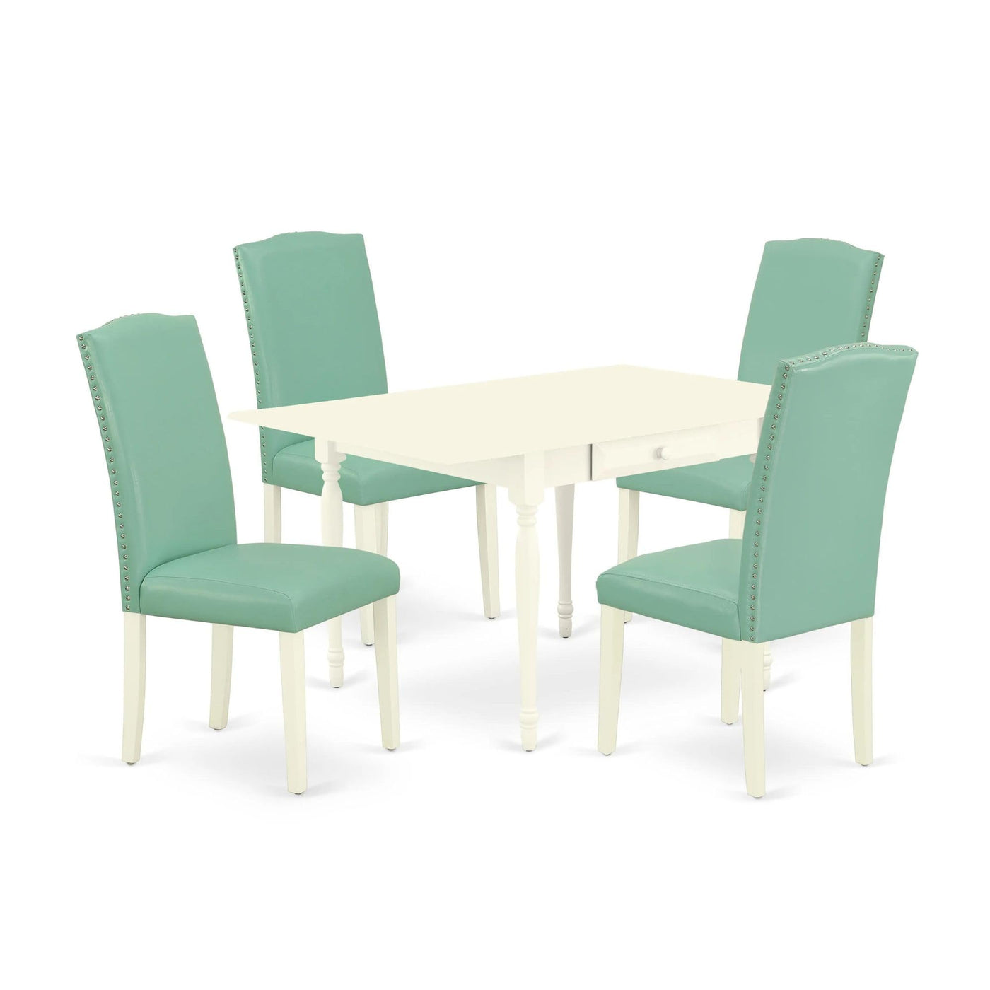 East West Furniture Mzen5-Lwh-57 5 Piece Dining Table Set For 4 Includes A Rectangle Kitchen Table With Dropleaf And 4 Pond Faux Leather Upholstered Parson Chairs, 36X54 Inch, Linen White