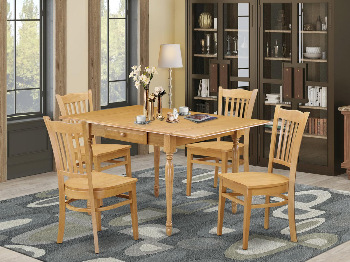 East West Furniture Mzgr5-Oak-W 5 Piece Kitchen Table Set For 4 Includes A Rectangle Dining Room Table With Dropleaf And 4 Dining Chairs, 36X54 Inch, Oak