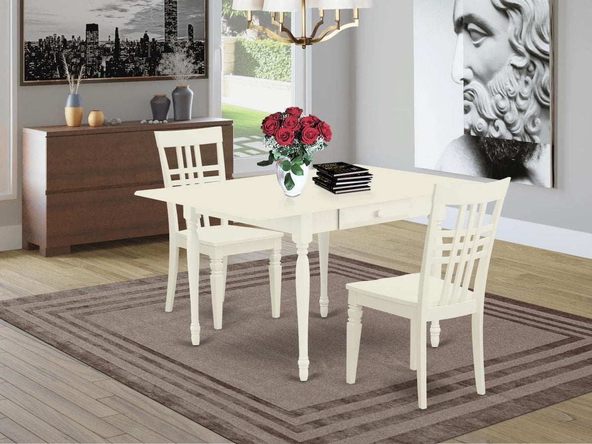 East West Furniture Mzlg3-Lwh-W 3 Piece Dining Set Contains A Rectangle Dining Room Table With Dropleaf And 2 Wood Seat Chairs, 36X54 Inch, Linen White