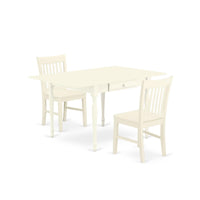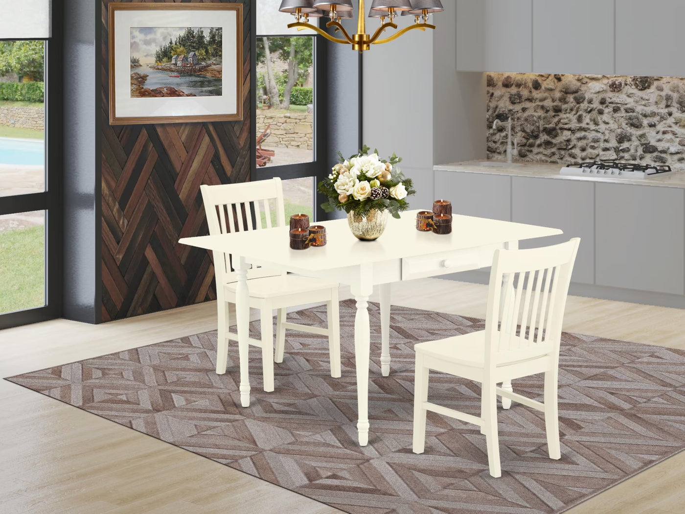 East West Furniture Mzno3-Lwh-W 3 Piece Kitchen Table Set For Small Spaces Contains A Rectangle Dining Room Table With Dropleaf And 2 Solid Wood Seat Chairs, 36X54 Inch, Linen White