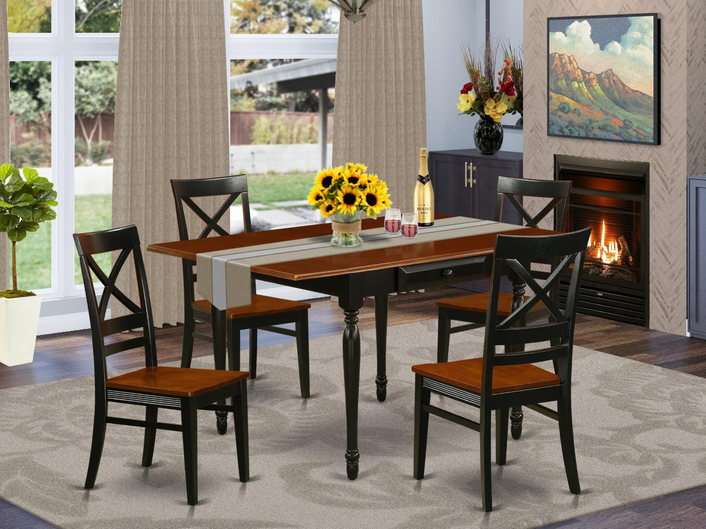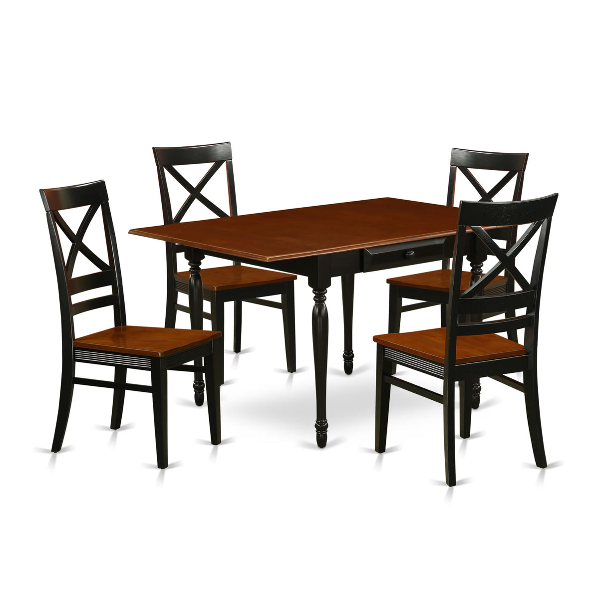 East West Furniture - Mzqu5-Bch-W - 5 Pieces Mid-Century Dining Table Setintroducing An Exquisite Kitchen Table Set For 4, Perfect For Your Stunning Kitchen. This Remarkable Dining Table Set Is Designed To Enhance The Sophistication Of Your Dining Room With Its Sleek And Stylish Aesthetic. Included In This 5-Piece Dining Room Set Are Four Elegant Dining Chairs And A Sturdy Breakfast Table. The Dining Chairs Boast A Comfortable X-Back Design Made Of Real Wood, Ensuring Continuous Comfort For The User. The Smooth And Pleasant Wooden Seats Of These Chairs Offer A Delightful Sitting Experience. With A Black Finish Frame And Cherry Seat, This Dining Table Set Presents A Captivating Appearance. Crafted From Premium Quality Asian Solid Wood, Commonly Known As Rubberwood, This Kitchen Set Is Exceptionally Durable And Reliable. The Modern Dining Table And Chairs Are Meticulously Constructed By Skilled Carpenters, Guaranteeing A Luxurious Finish. Assembling This Kitchen Set Is A Breeze, Saving You Time And Allowing For Easy Relocation. With Just A Few Simple Tools, You Can Effortlessly Assemble The Kitchen Chairs And Dining Table In Your Home Within Minutes. Furthermore, Both The Chairs And Table Are Easy To Clean, A Crucial Factor For Maintaining A Hygienic Home Environment.Product Features: Material: Wood Color: Black And Cherry Wood Table Dimensions: Length: 54/36; Width: 36; Height: 30. Wood Dining Chairs Dimensions: Length: 22; Width: 18; Height: 40. Table'S Extra Features: Two 9-Inch Drop Down Leaves And 2 Drawerspackage Includes: 1 Kitchen Table, 4 Dining Room Chairs