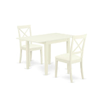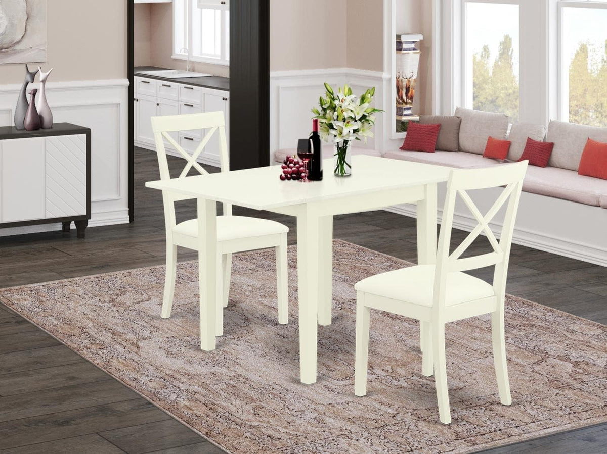 East West Furniture Ndbo3-Lwh-Lc Norden 3 Piece Room Set Contains A Rectangle Dining Table With Dropleaf And 2 Faux Leather Upholstered Chairs, 30X48 Inch, Linen White