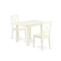 East West Furniture Ndbo3-Lwh-W Norden 3 Piece Dinette Set For Small Spaces Contains A Rectangle Table With Dropleaf And 2 Kitchen Dining Chairs, 30X48 Inch, Linen White